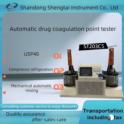 Il coagulante automatico della droga di ST203CS è progettato e fabbricato secondo USP40 (40 versione della farmacopea degli Stati Uniti) USP 40 la determinazione di 651 punto di congelamento e la regola generale la determinazione di 0613 punti di congelamento della farmacopea cinese nel 2020. È applicabile alla determinazione del punto di congelamento di medicina liquida. Determini la temperatura a cui la droga resta identicamente per un breve periodo quando è condensata da liquido al solido. Alcune droghe hanno determinati cambiamenti nel punto e nella purezza di coagulazione ed i cambiamenti del punto di coagulazione inoltre. La determinazione del punto di coagulazione può distinguere o controllare la purezza delle droghe. Per esempio, bisfenolo A dello stearato del magnesio del fenolo di acido acetico del polietilene glicole, ecc. glaciali.
