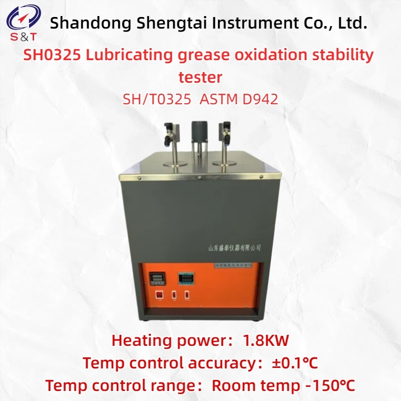Il tester di stabilità all'ossidazione del lubrificante SH0325 è adatto per determinare le prestazioni di ossidazione dei lubrificanti secondo SH/T0325 e ASTMD942. Lo strumento adotta un termoregolatore digitale per controllare la temperatura, e il bagno raggiunge una temperatura costante tramite agitazione motorizzata. Posizionare una bomba a ossigeno con un manometro in un bagno a temperatura costante, introdurre ossigeno a una certa pressione e, dopo un certo periodo di tempo, determinare la stabilità all'ossidazione del grasso lubrificante in base alle variazioni di pressione all'interno della bomba a ossigeno.