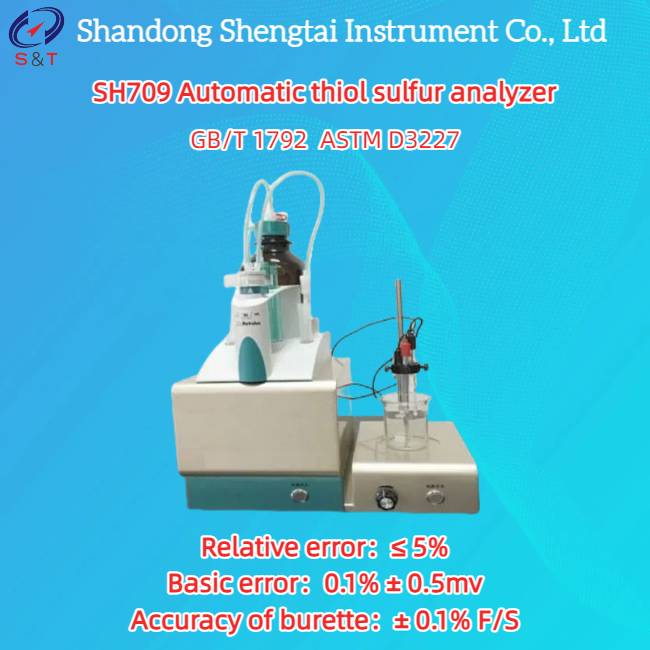 L'analizzatore di zolfo tiolico SH709 è conforme a standard come GB/T 1792 e ASTM D3227. Adatto per la determinazione dello zolfo tiolico in carburante per jet senza idrogeno solforato, benzina, cherosene e gasolio leggero. La determinazione dello zolfo tiolico è di grande importanza nella valutazione dell'odore del carburante per jet, della benzina, del cherosene e del gasolio leggero, dei suoi effetti negativi sui componenti in gomma dei sistemi di alimentazione e della sua corrosione sui sistemi di alimentazione.