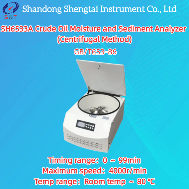 L'analizzatore dell'umidità e dei sedimenti del greggio SH6533A è progettato per la determinazione dell'umidità e dei sedimenti nel greggio utilizzando una centrifuga e soddisfa i requisiti della norma GB/T653-86.Utilizzare il metodo di separazione in centrifuga per determinare l'acqua e i sedimenti nel greggioÈ un'attrezzatura di separazione ideale per la determinazione dell'umidità nell'industria dell'estrazione del petrolio e negli istituti di ricerca scientifica.