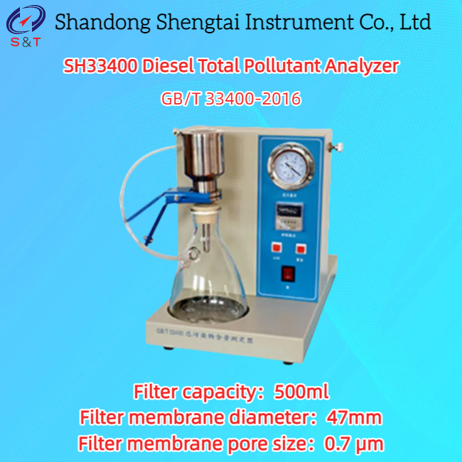 L'analizzatore di inquinanti totali diesel SH33400 è progettato dalla nostra azienda per conformarsi allo standard GB/T 33400-2016 per la determinazione del contenuto totale di inquinanti nei distillati medi, nel diesel e negli esteri metilici di acidi grassi.