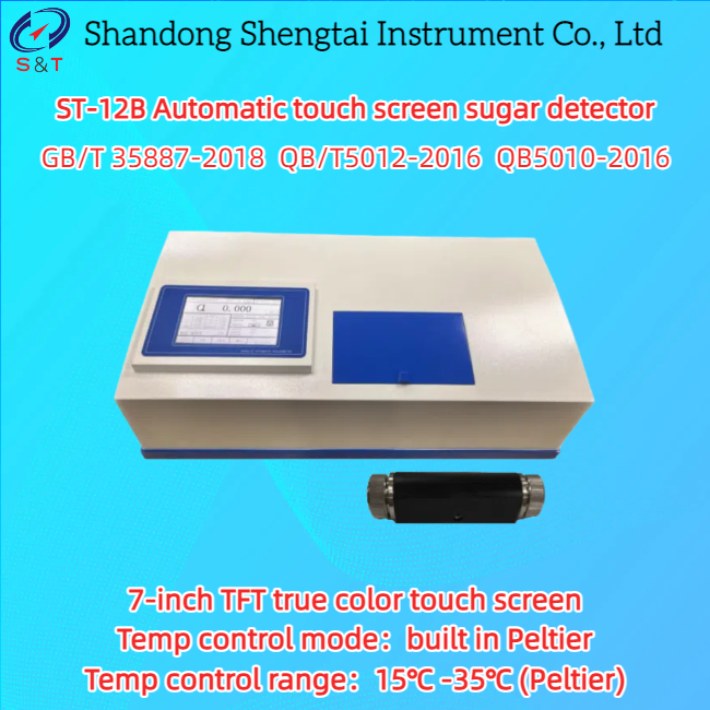 Il rilevatore automatico di zucchero con touchscreen ST-12B è uno strumento per misurare la rotazione ottica delle sostanze. La concentrazione, la purezza, il contenuto di zucchero o il contenuto del campione possono essere determinati misurando la rotazione ottica del campione. È ampiamente utilizzato nella produzione di zucchero, farmaceutica, petrolifera, alimentare, chimica e in altri settori industriali, nonché in college, università e istituzioni di ricerca scientifica pertinenti, ed è conforme al metodo di prova GB/T 35887-2018 per lo zucchero bianco granulato, al metodo di prova QB/T 5012-2016 per lo zucchero bianco e al metodo di prova QB5010-2016 per lo zucchero di roccia.