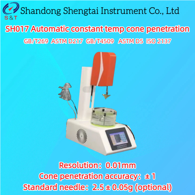 Il penetrometro a cono a temperatura costante completamente automatico SH017 è progettato e prodotto in conformità con i requisiti tecnici e le normative pertinenti degli standard cinesi GB/T269 e GB/T4509. È adatto principalmente per testare la penetrazione del cono del grasso lubrificante. Trasporti, ingegneria autostradale e altri settori industriali possono essere ampiamente applicati. ISO 2137-2007 Prodotti petroliferi e lubrificanti GB/T22459.1 Slurry refrattario