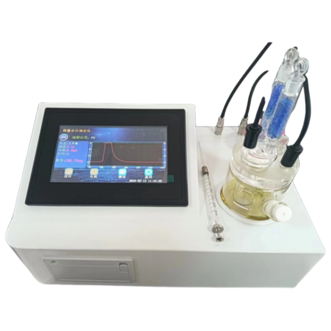 | Evidenziare | Igrometro automatico del grasso,Tester di umidità per tracce di olio lubrificante,Analisatore di umidità per titolazione elettrometrica |