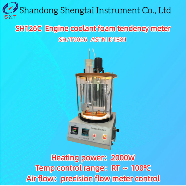 Il tester della tendenza alla schiuma del liquido di raffreddamento del motore SH126C è progettato in base ai requisiti dello standard dell'industria petrolchimica della Repubblica Popolare Cinese SH/T0066 "metodo di determinazione della schiuma di raffreddamento del motore", adatto per la determinazione della schiuma del liquido di raffreddamento del motore diluito o concentrato secondo il metodo di prova dello standard SH/T0066.