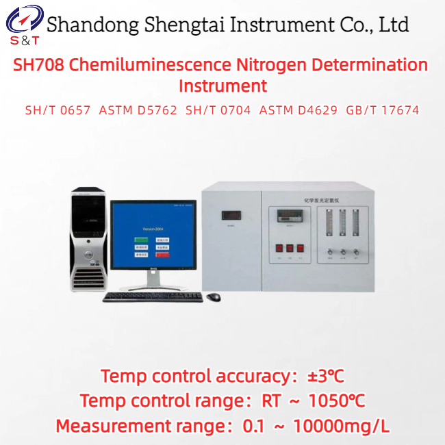 L'analizzatore di azoto a chemiluminescenza SH708 utilizza il metodo della chemiluminescenza per determinare il contenuto totale di azoto, il che migliora la capacità di resistere alle interferenze delle impurità ed evita il funzionamento ingombrante della cella di titolazione causato dal metodo coulombometrico e i conseguenti fattori instabili, migliorando notevolmente la sensibilità dello strumento. I componenti chiave del sistema utilizzano componenti importati, garantendo prestazioni affidabili dell'intera macchina. Applicabile alla determinazione del contenuto totale di azoto in olio di paraffina, diesel, benzina, olio lubrificante, olio combustibile, gas liquefatto e gas naturale, nonché in altri prodotti petroliferi, materie prime chimiche e prodotti finiti, in conformità con lo standard SH/T 0657 Determinazione dell'azoto in tracce negli idrocarburi liquidi del petrolio (Metodo di combustione ossidativa e chemiluminescenza, ASTM D5762-2017, SH/T 0704, ASTM D4629, GB/T 17674 Determinazione del contenuto di azoto nel petrolio grezzo mediante metodo di iniezione a barca a chemiluminescenza).